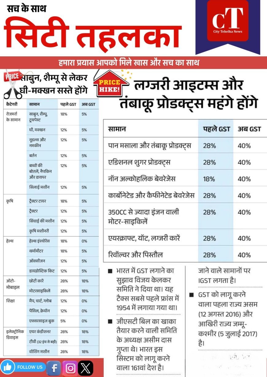 ➤ लग्जरी सामान और तंबाकू उत्पादों पर अब 40% GST लागू होगा