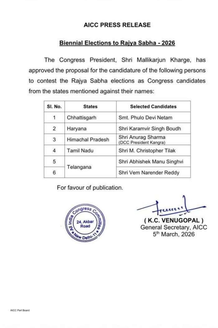 राज्यसभा की इन दोनों सीटों के लिए 16 मार्च को चुनाव कराया जाएगा। राजनीतिक दलों में पिछले कई दिनों से उम्मीदवारों को लेकर मंथन चल रहा था। बुधवार देर रात तक चली चर्चा के बाद कांग्रेस ने आखिरकार कर्मवीर बौद्ध के नाम पर मुहर लगा दी।