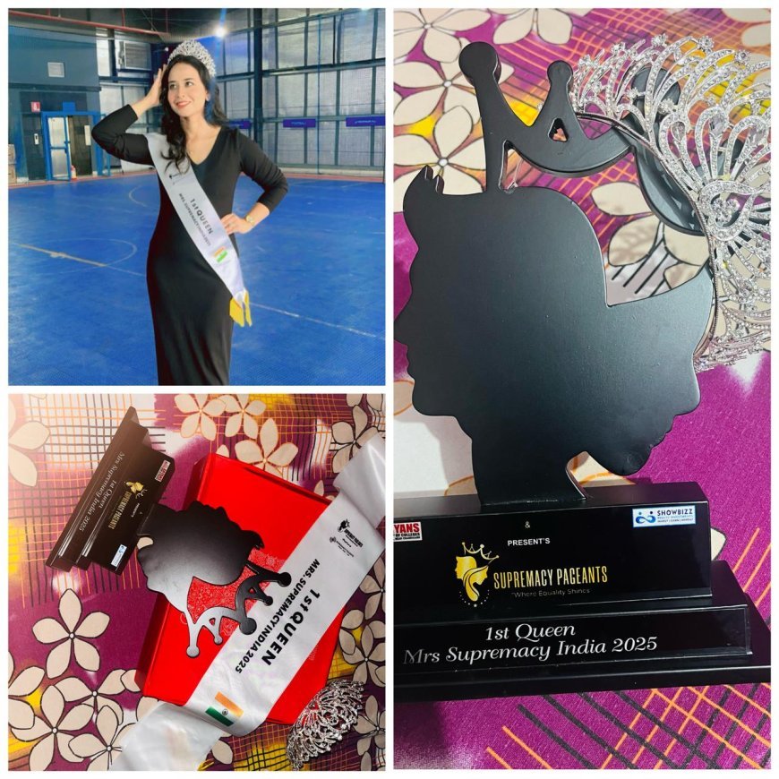 डॉ. मीनल मेहंदी रत्ता नारवाणी ने मिसेज़ सुप्रीमेसी इंडिया 2025 का ताज जीतकर पानीपत और हरियाणा का नाम रोशन किया इस जीत के साथ वे ब्रांड एम्बेसडर बनकर सामाजिक कार्य और पर्यटन प्रोत्साहन पर काम करेंगी