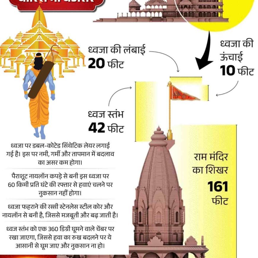 अयोध्या में आज PM मोदी रामलला के मंदिर पर 161 फीट ऊंचे दंड पर सोने-मढ़ी धर्मध्वजा फहराएंगे। अभिजीत मुहूर्त में कार्यक्रम, 7 हजार मेहमान होंगे शामिल।
